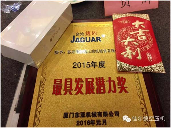 恭喜苏州佳尔德压缩机销售有限公司荣获“2015年度发展潜力奖”